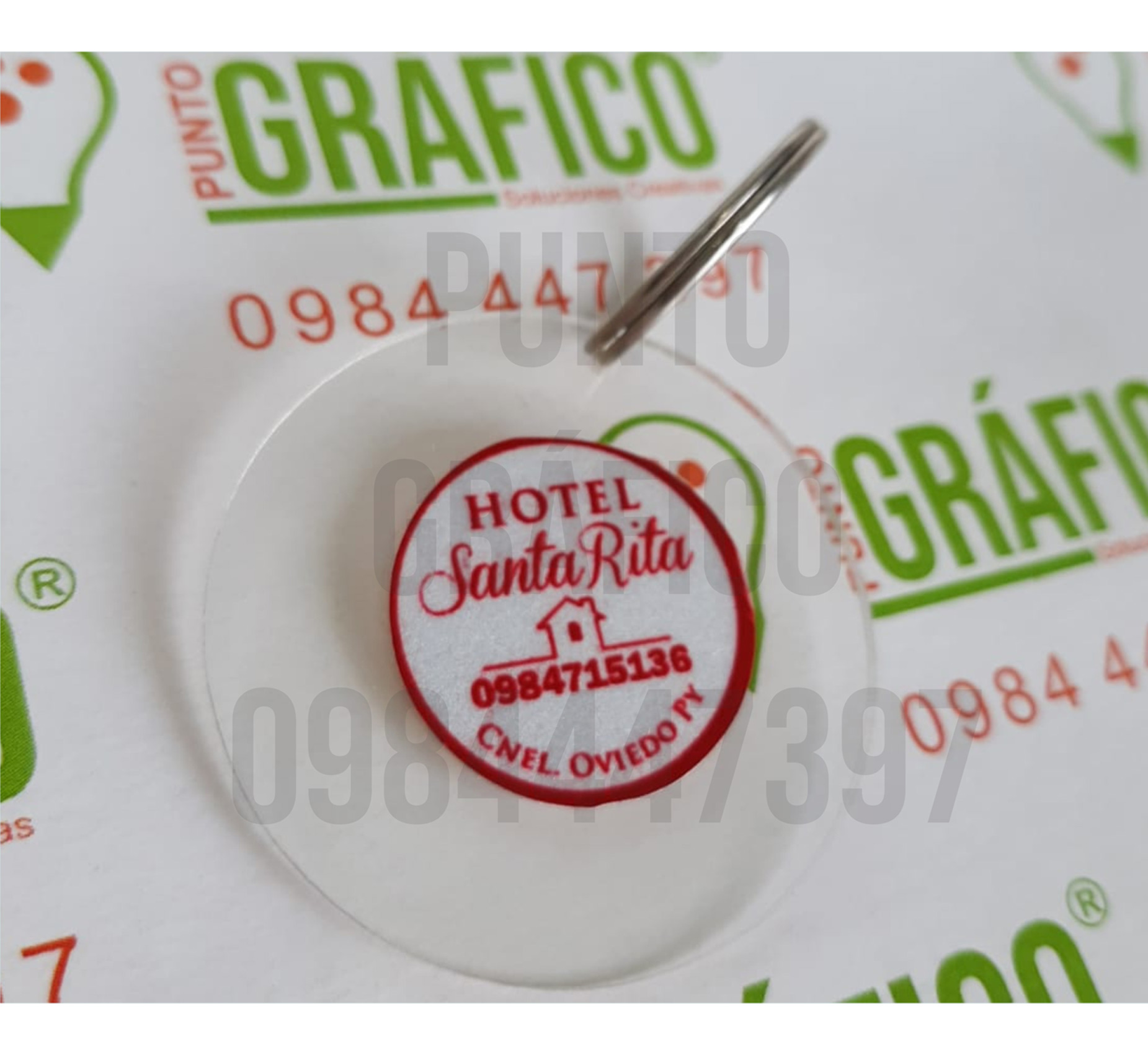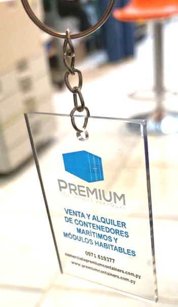 DEL PRODUCTO: Llaveros acrílico con forma circular o cuadrada, impresión directa a color, tamaño máximo 7 cm, tamaño mínimo 3 cm.